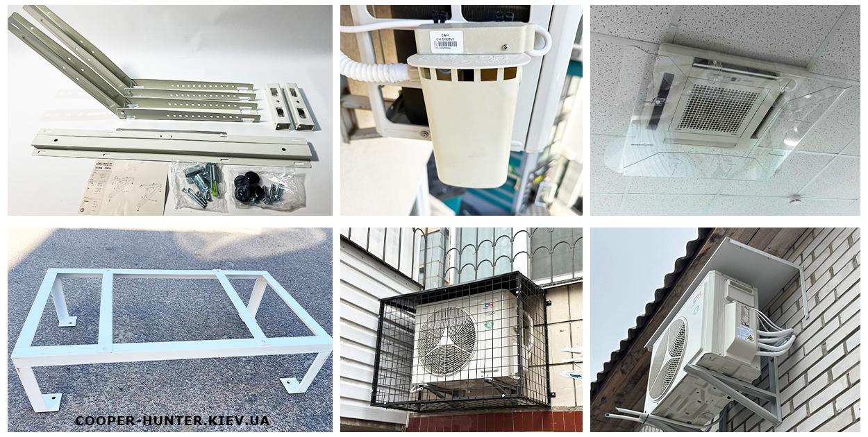 - Антивандальні решітки. Запобігають механічним пошкодженням зовнішнього блоку, зрізання мідної траси та крадіжок техніки. Бажано встановлювати при монтажі, та якщо перший або другий поверх;